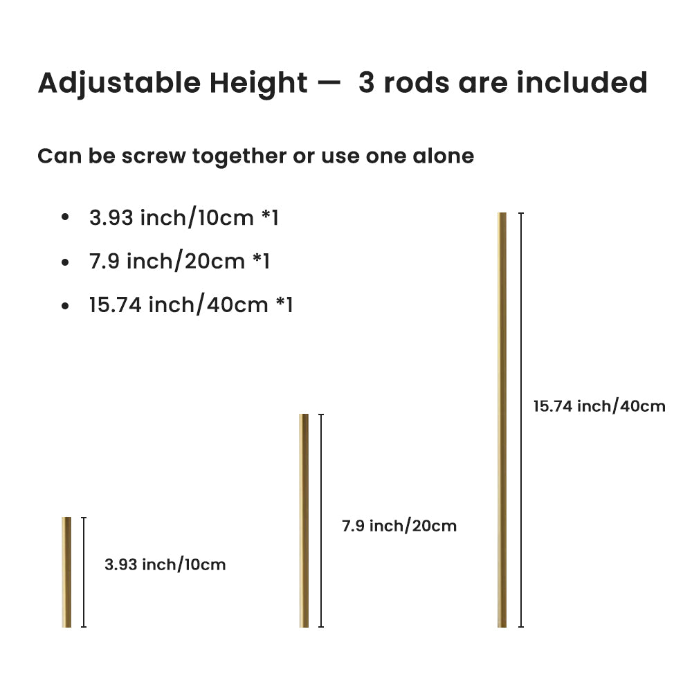 1.There may be an error of 1-3cm in the size due to manual measurement. 2. The pictures may have slight chromatism due to the light and the monitor. 3. Whether it is dimmable depends on the light source you install. 4. The default length of the rods are 10+20+40 cm. Your understanding is appreciated.Thanks |