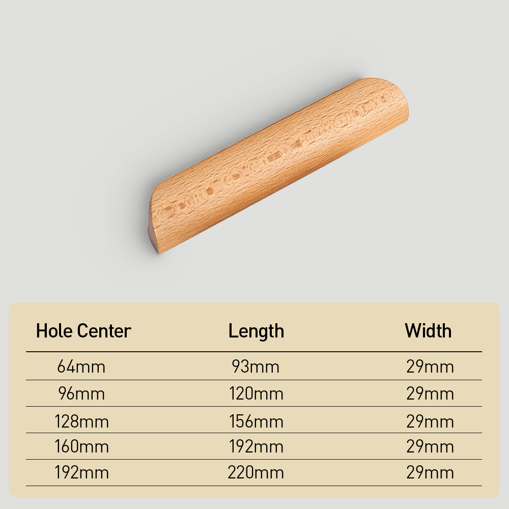 Made of high-quality wood, this durable and lightweight handle features a smooth surface and a semicircle design for a comfortable grip.Its modern, minimalist style with fine details adds both function and charm.Perfect for cabinets, dressers, and drawers, it brings a refined modern touch to your home.